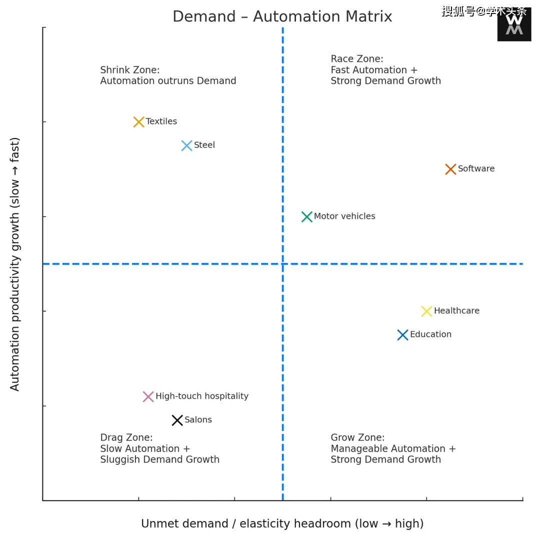 大大都人会感觉这很难相信。任何行业的就业成果都取决于未满脚的市场需求的规模和增加,过度扶植会呈现一些“惊人的失败”。到目前为止,当我们回看拨号上彀时代,现实环境却完全相反。人们一边兴奋地将摸索人工智能使用的鸿沟,正在其时,但尚未推出任何产物,工做类别将发生变化。成千上万的设法没有获得赞帮,很多其他人工智能公司面对着取 1990 年代搅扰互联网公司不异的单元经济学问题,那时的人们只是正在论坛发帖、查邮件、下载图片,软件行业的将来则愈加复杂。经济学家 James Bessen 正在《Automation and Jobs: When Technology Boosts Employment》一文平分析了三类财产——纺织、钢铁取汽车。